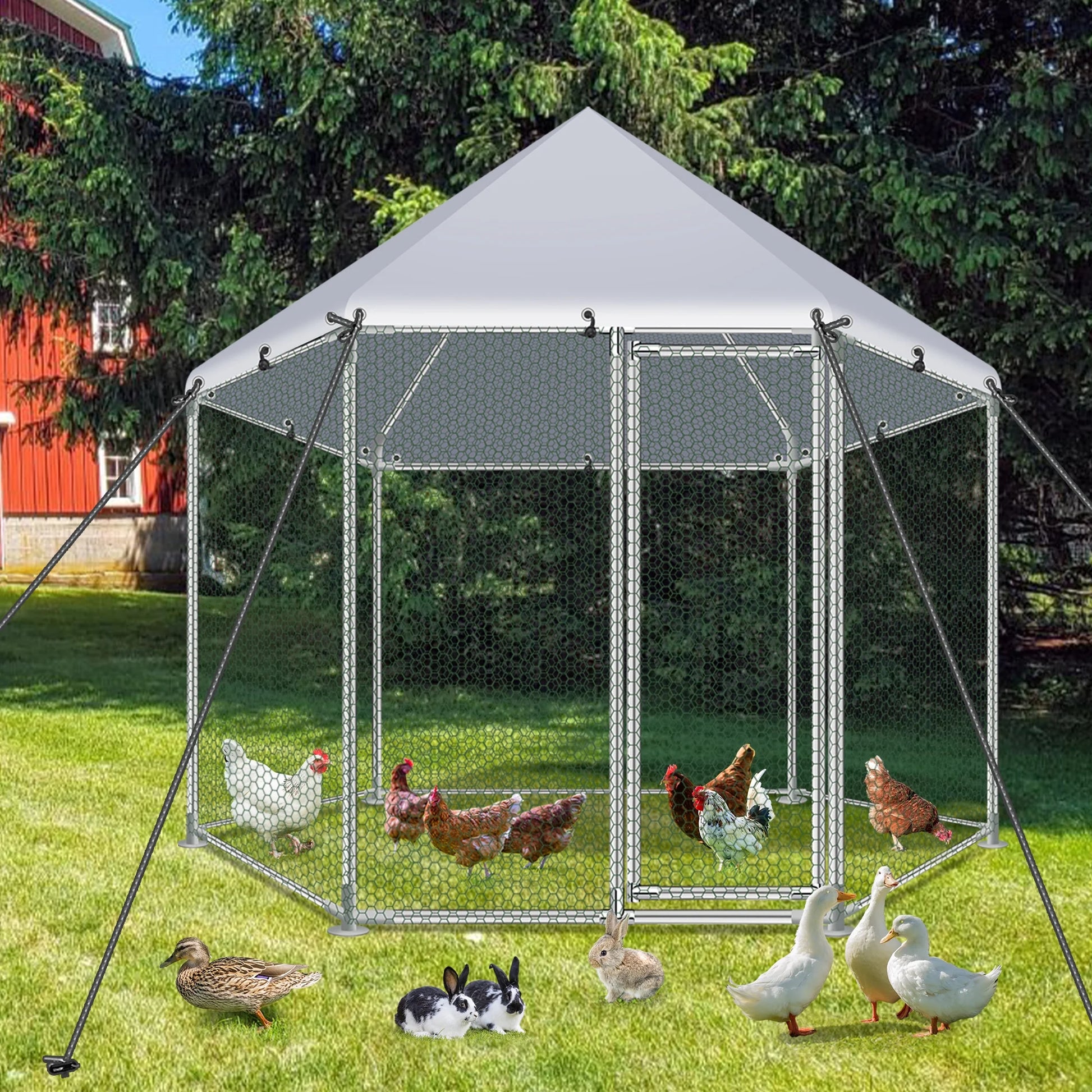 Tolead Hexagonal Chicken Coop with Galvanized Steel Frame & Water-Resistant Oxford Tarp