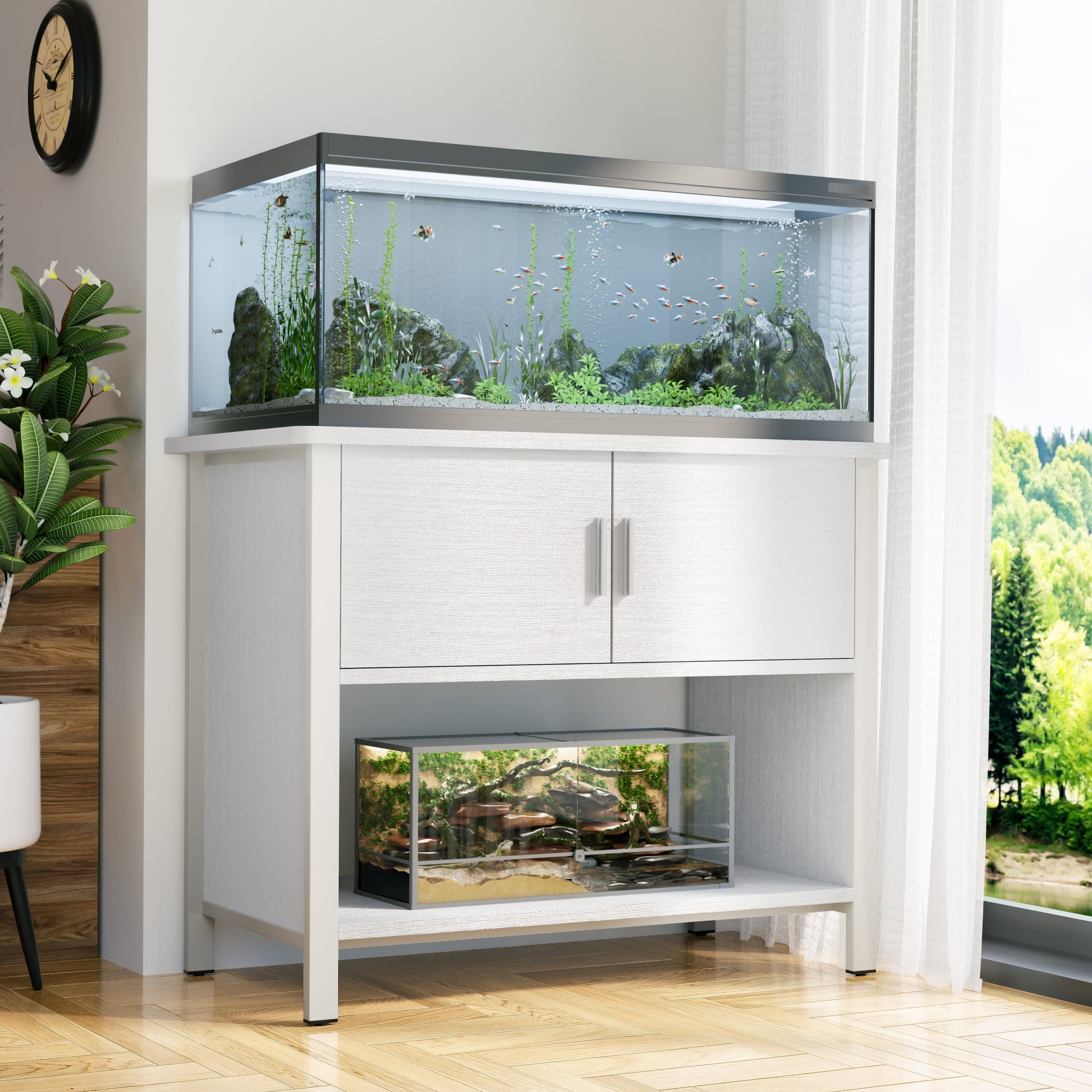 - Materials & Appearance: This fish tank stand is constructed of durable MDF and sturdy powder-coated steel frame. The modern and minimalist look with elegant 3D wood grain texture is suitable for a variety of interior decorating styles