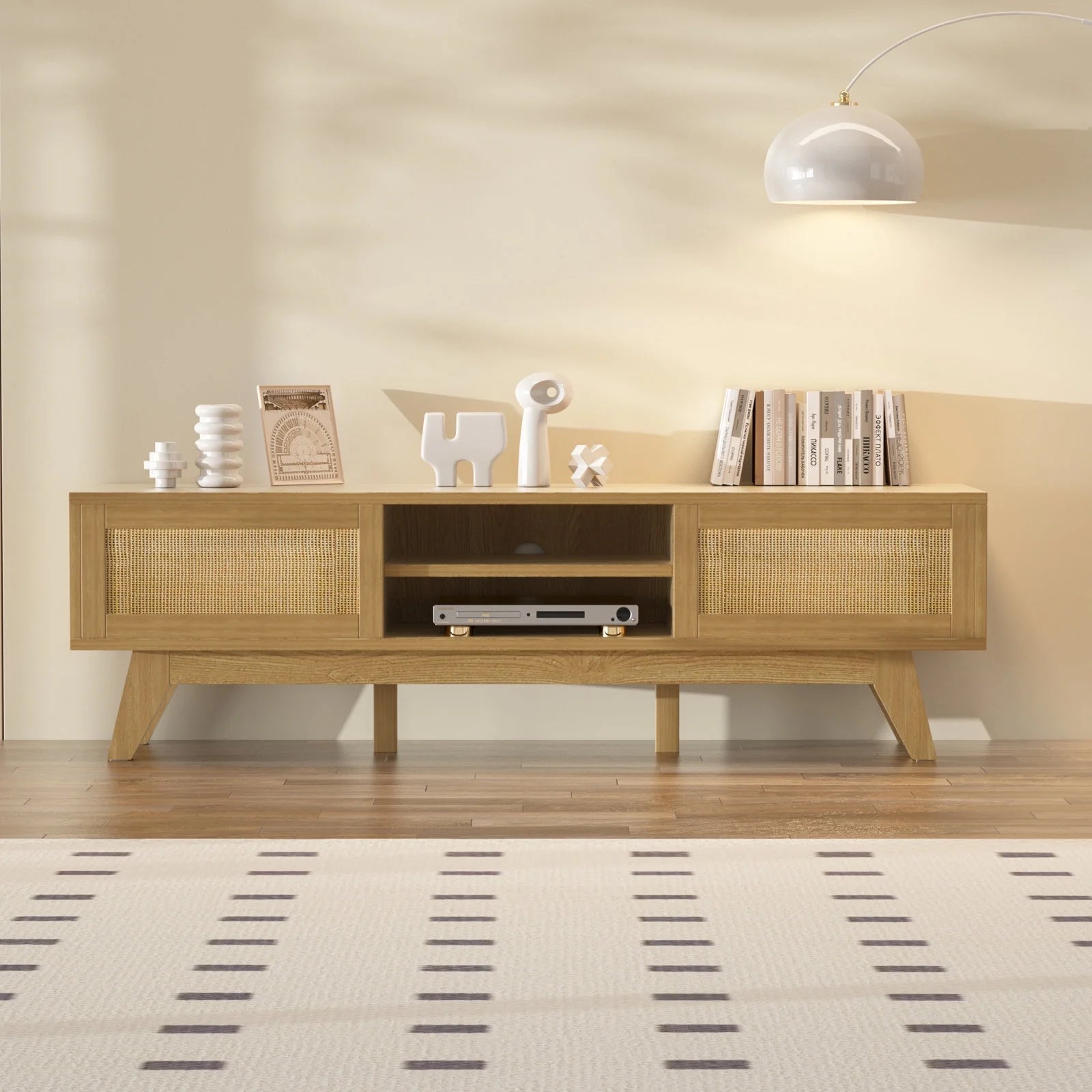 Tolead Rattan Low Profile TV Stands with Sliding Doors, up to 65" TV, Natural