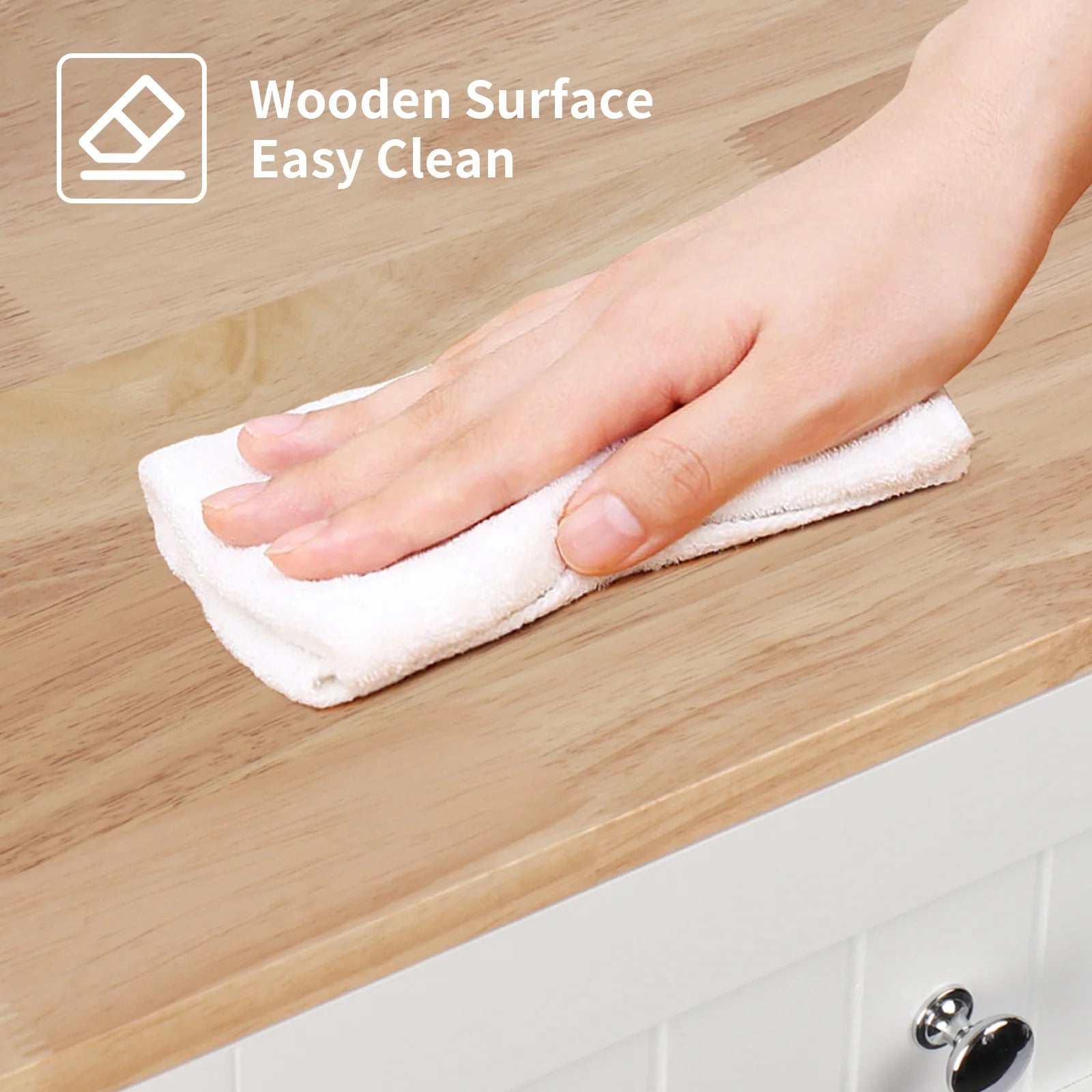 - 【Extra Storage Space】 The cabinets are simple and functional. Combined with pull-out drawers to hold kitchen utensils, cutlery and other staff, the kitchen is no longer cluttered.