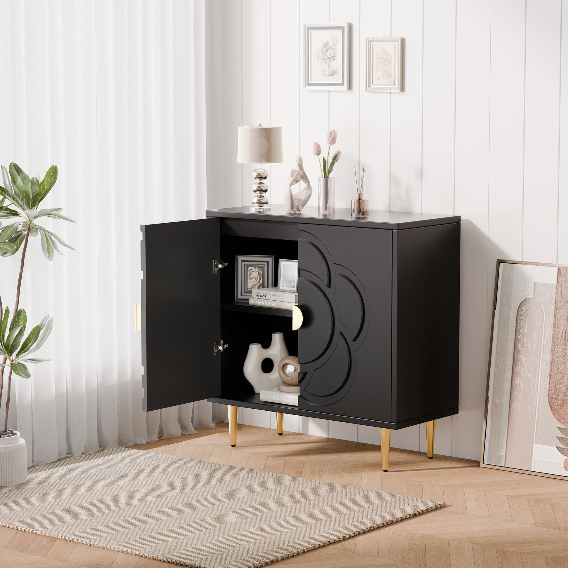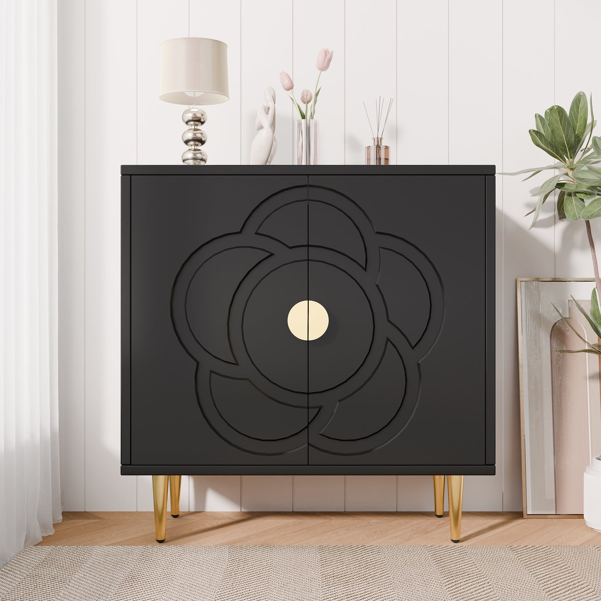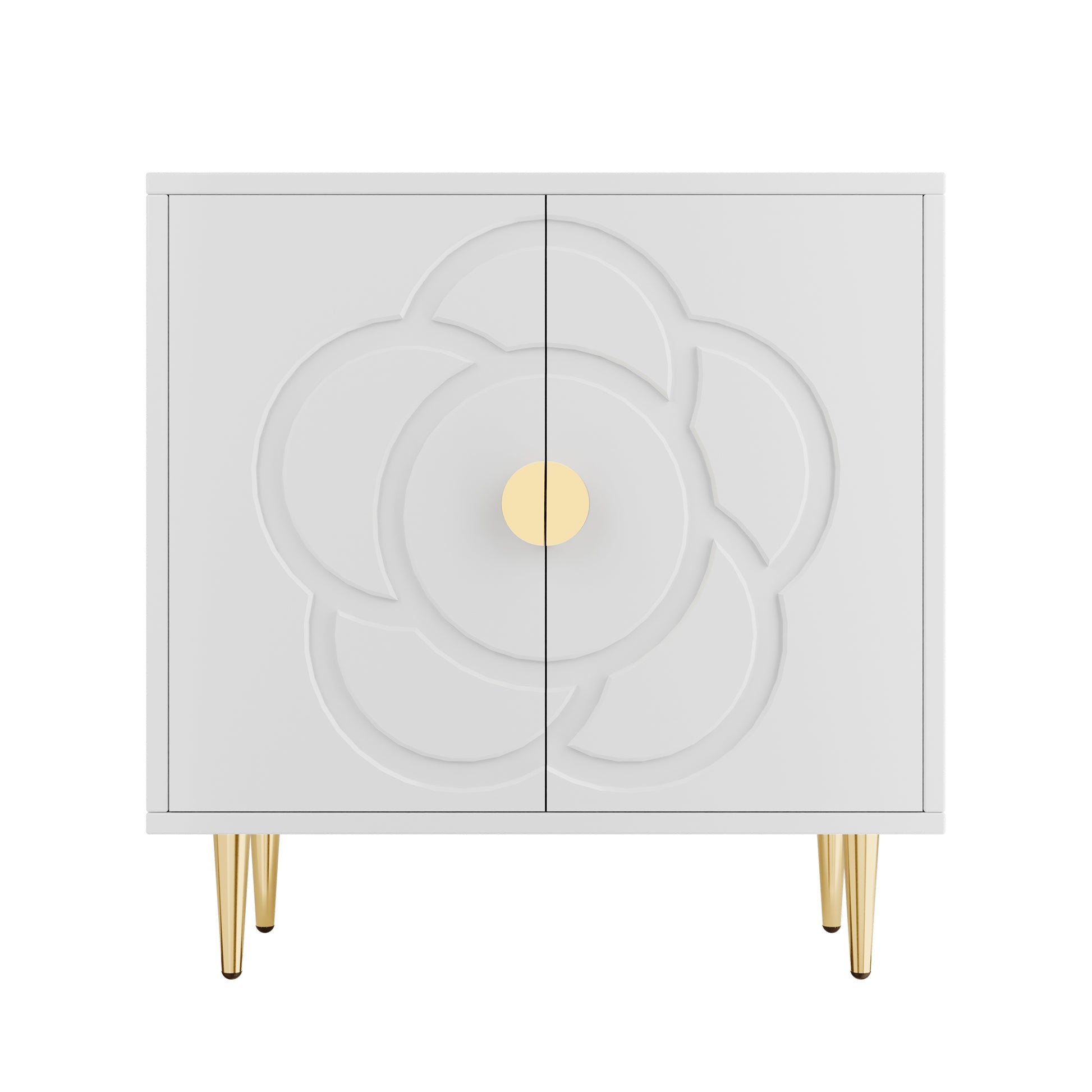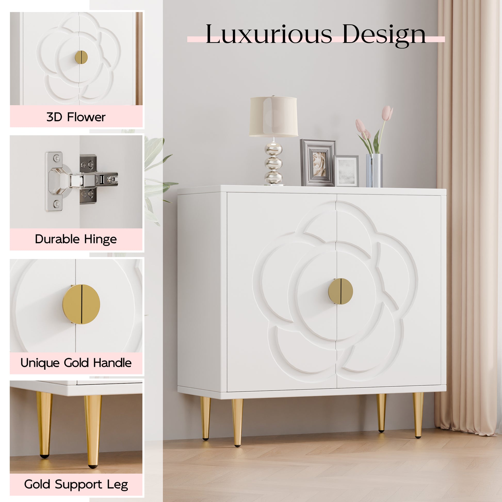- 【Unique Flower Shape Panel】Our storage cabinet is a piece of indoor furniture that is both fashionable and practical. On the panel is a complete hand-carved flower, and the golden handle looks like the stamen of the flower from a distance, making the entire cabinet look very vivid