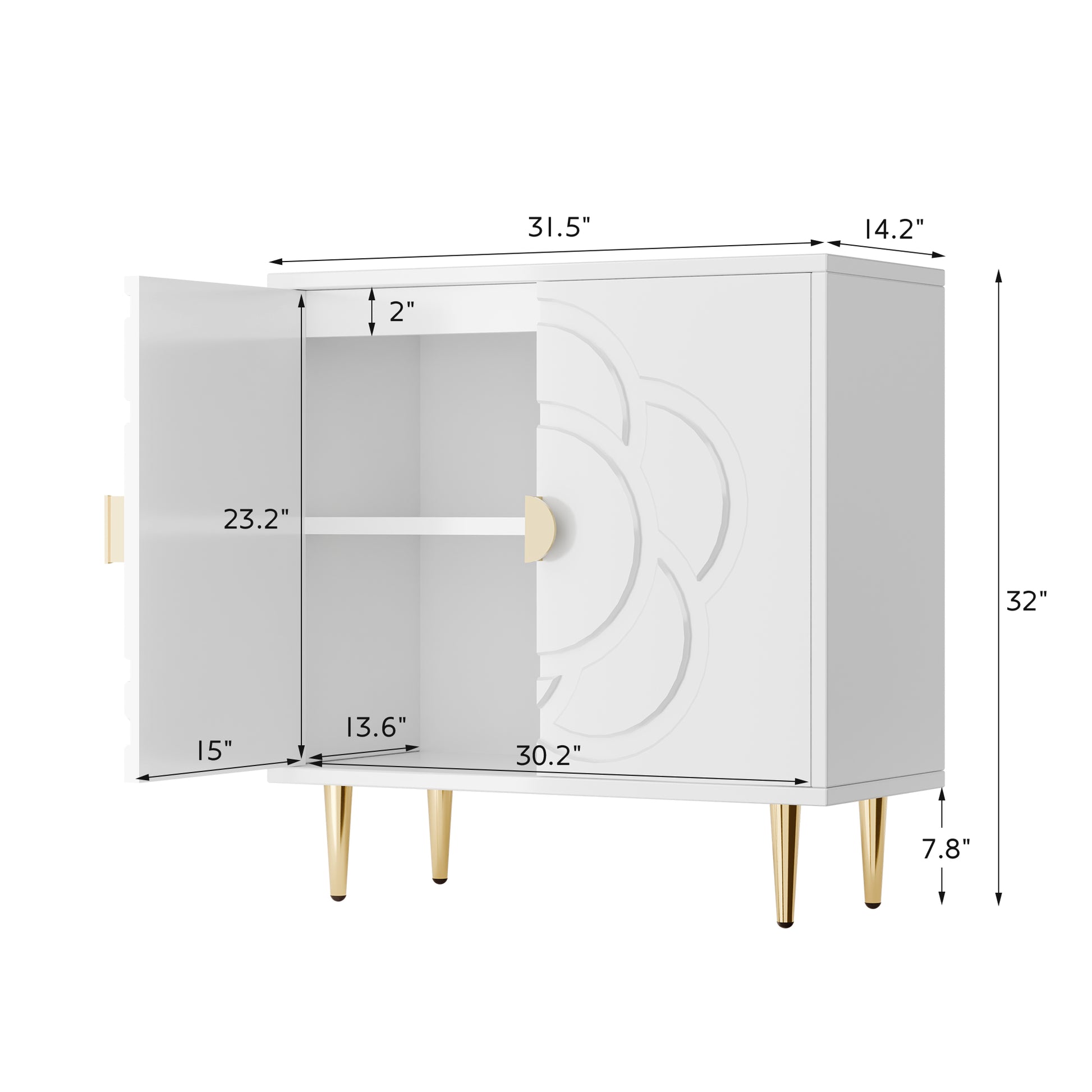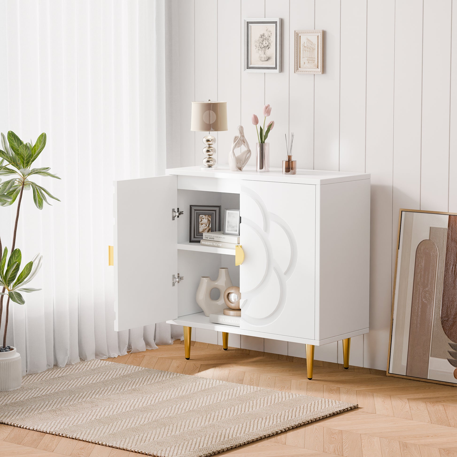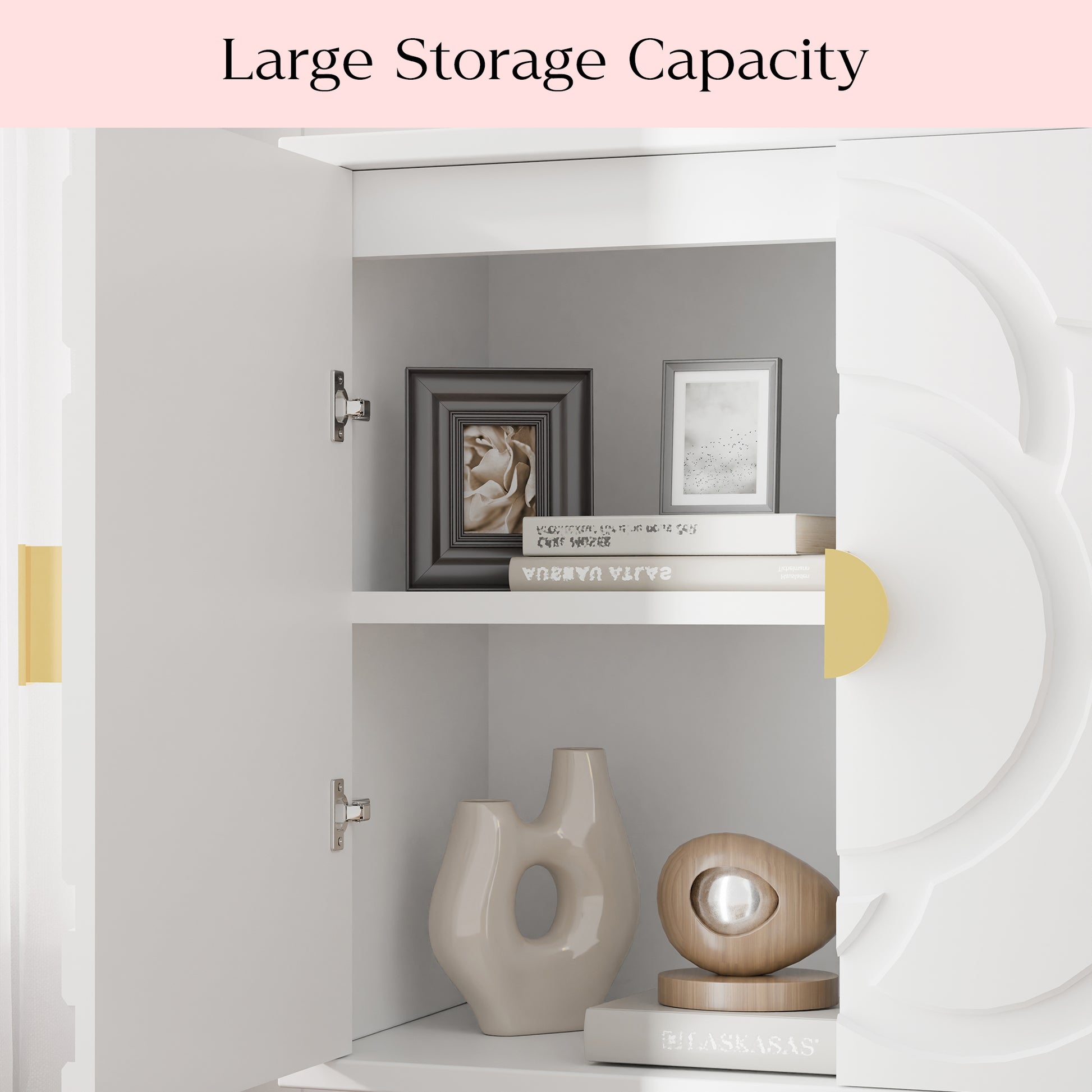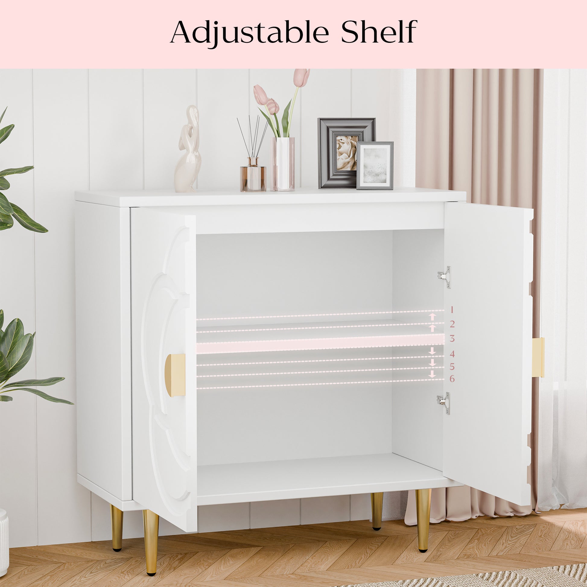 Tolead Storage Cabinet with Flower Pattern Panel, Modern Sideboard Buffet Cabinet, White