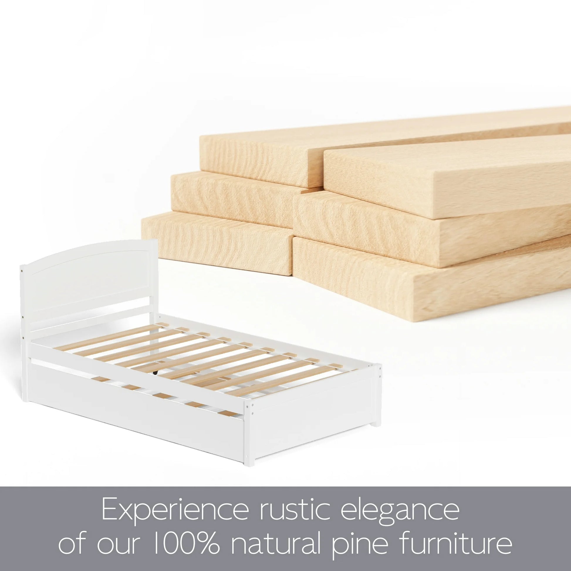 - 100% Natural Solid Wood: Every part of this twin bed, is made of high-quality natural pine wood, that is moisture resistant and sturdy for durability. The natural pine will add a touch of rustic simplicity to your room, bringing warmth and coziness to your space