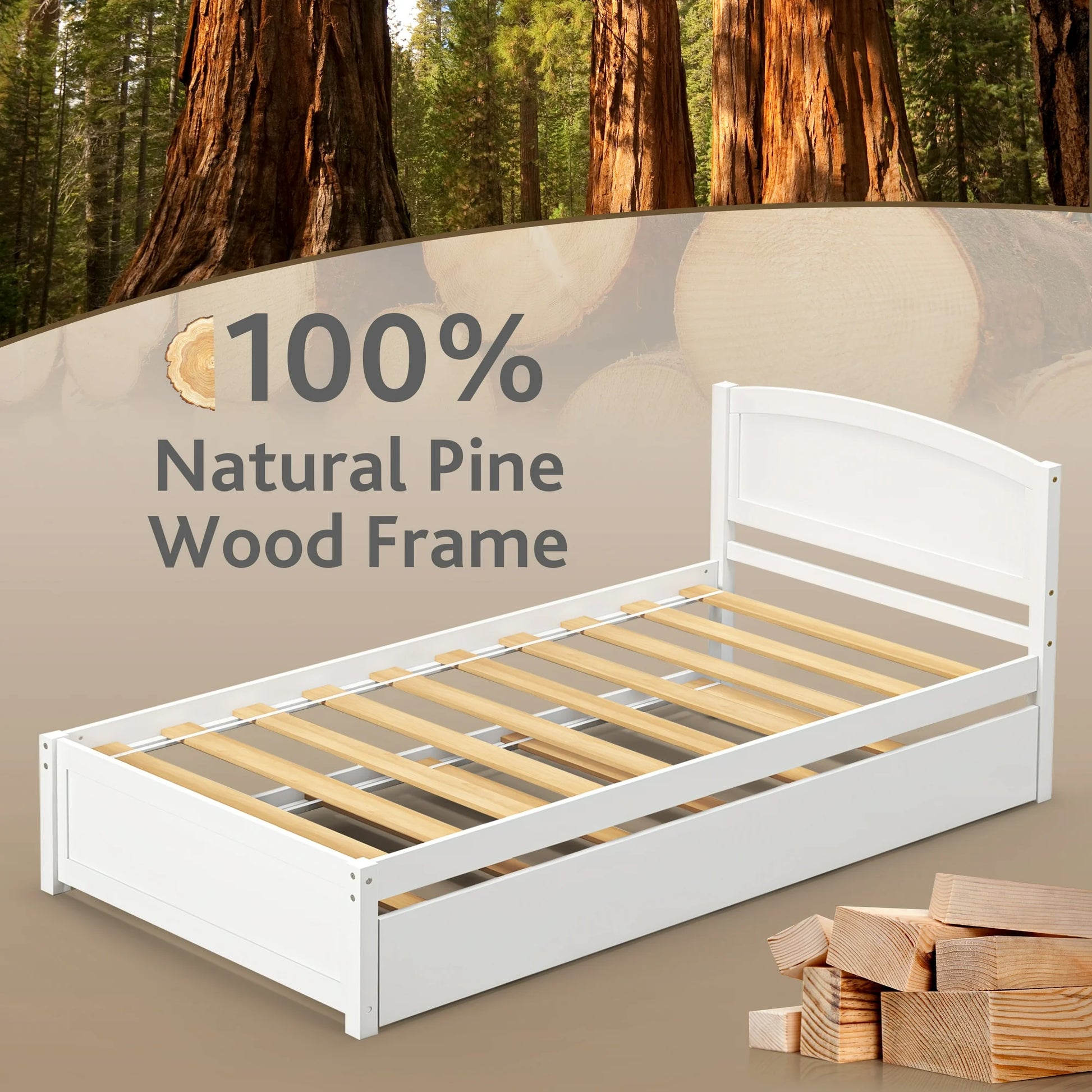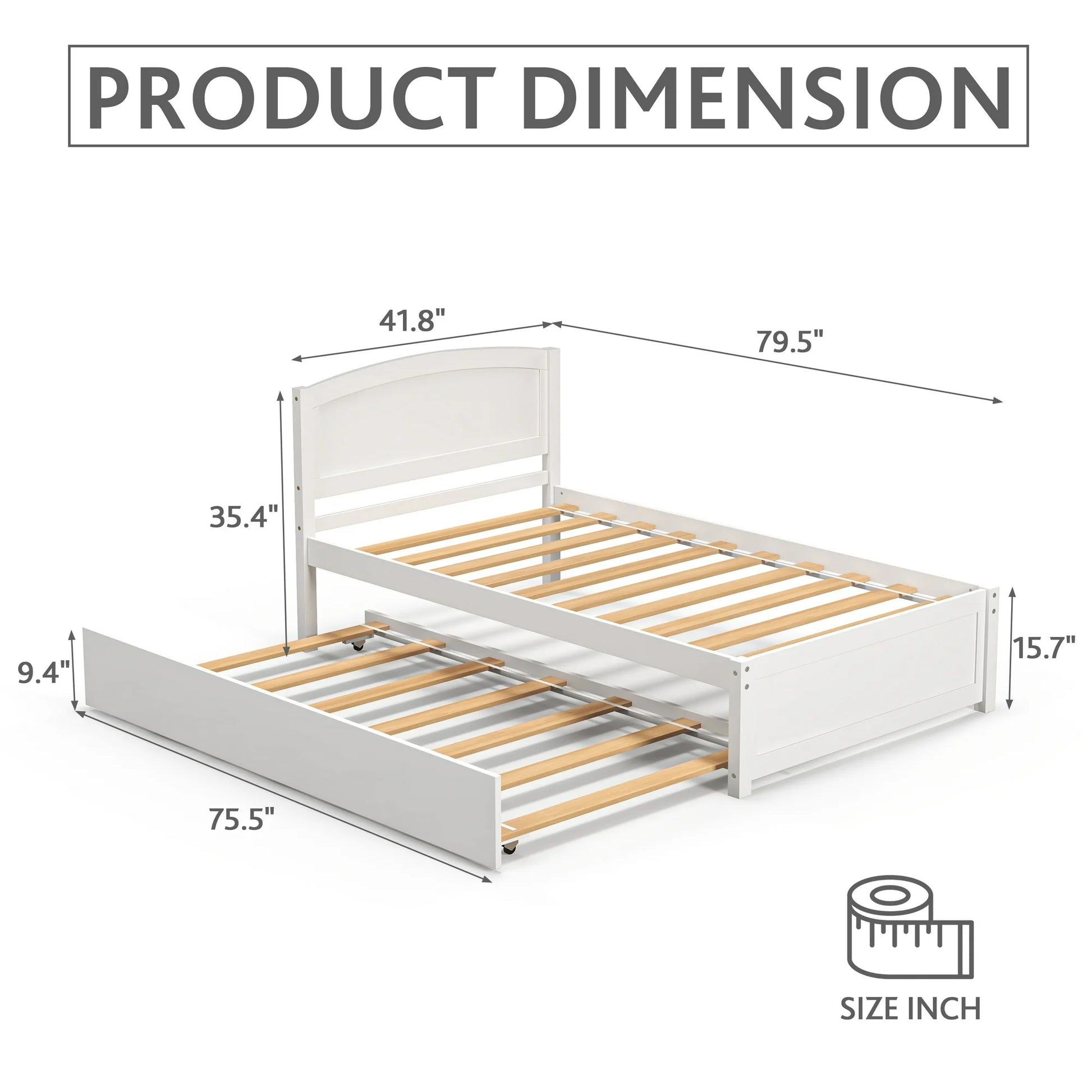 - Single to Double in a Flash: This cleverly designed trundle daybed frame can be easily transformed from a single bed to two separate ones when needed. With its pull-out feature, it takes up minimal space during the day and is perfect for accommodating guests or siblings sharing a bedroom|100% Natural Solid Wood: Every part of this twin bed, is made of high-quality natural pine wood, that is moisture resistant and sturdy for durability. The natural pine will add a touch of rustic simplicity to your room, bringing warmth and coziness to your space|Preferred by Kid to Teen Users: Not just for kids, this twin trundle bed is also an excellent option for teens who want a stylish and practical bed for their own room. Its sturdy and durable solid wood, ensures durability and longevity for years to come, accompanying children's growth