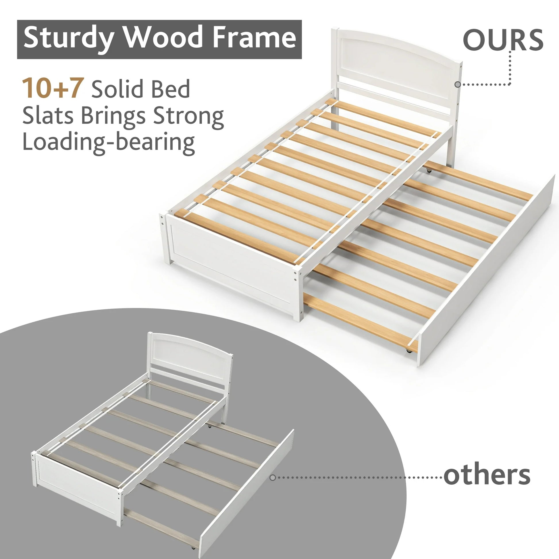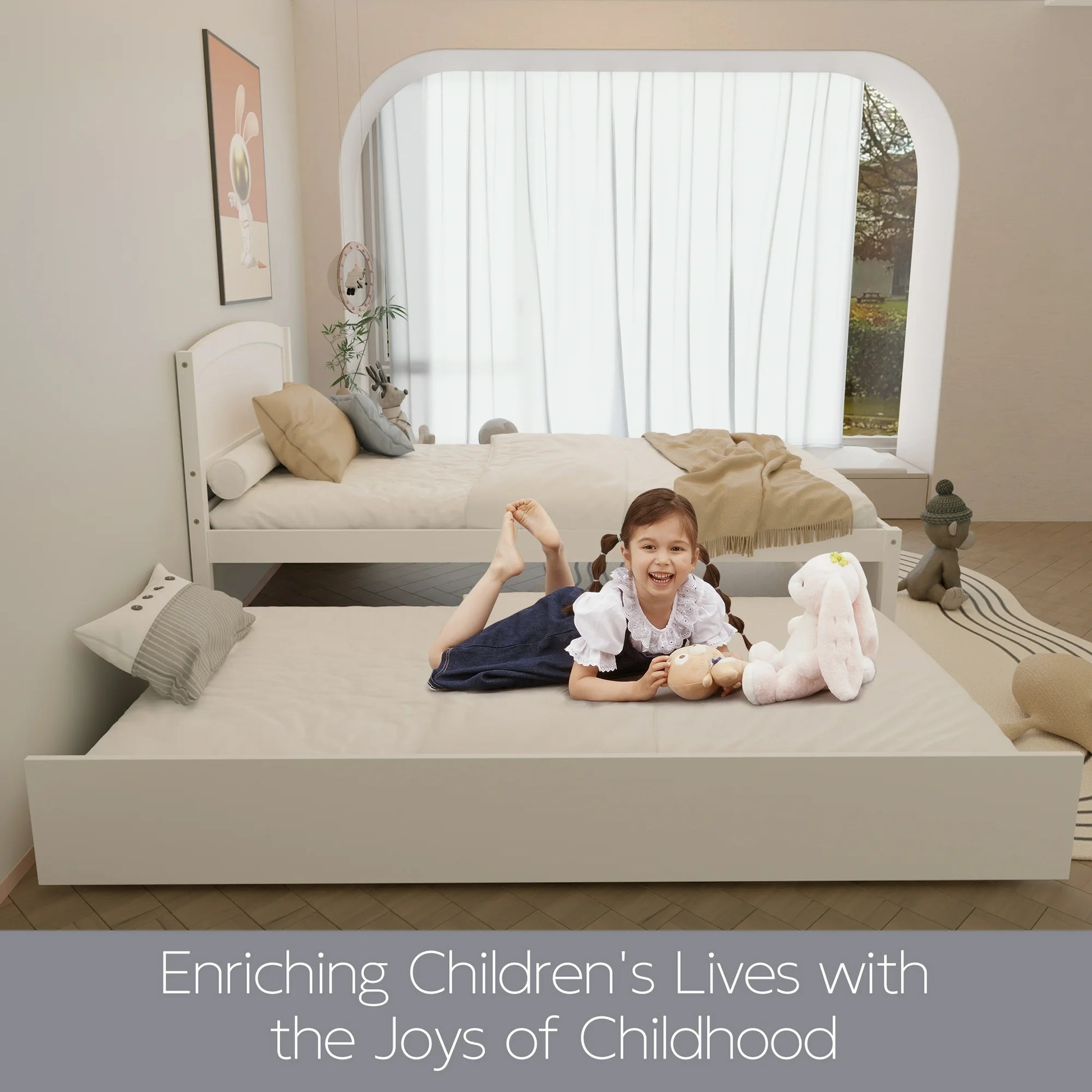 Tolead Twin Daybed with Trundle, Wood Sofa Bed Frame for Kids & Teens, Rustic, Sturdy, White