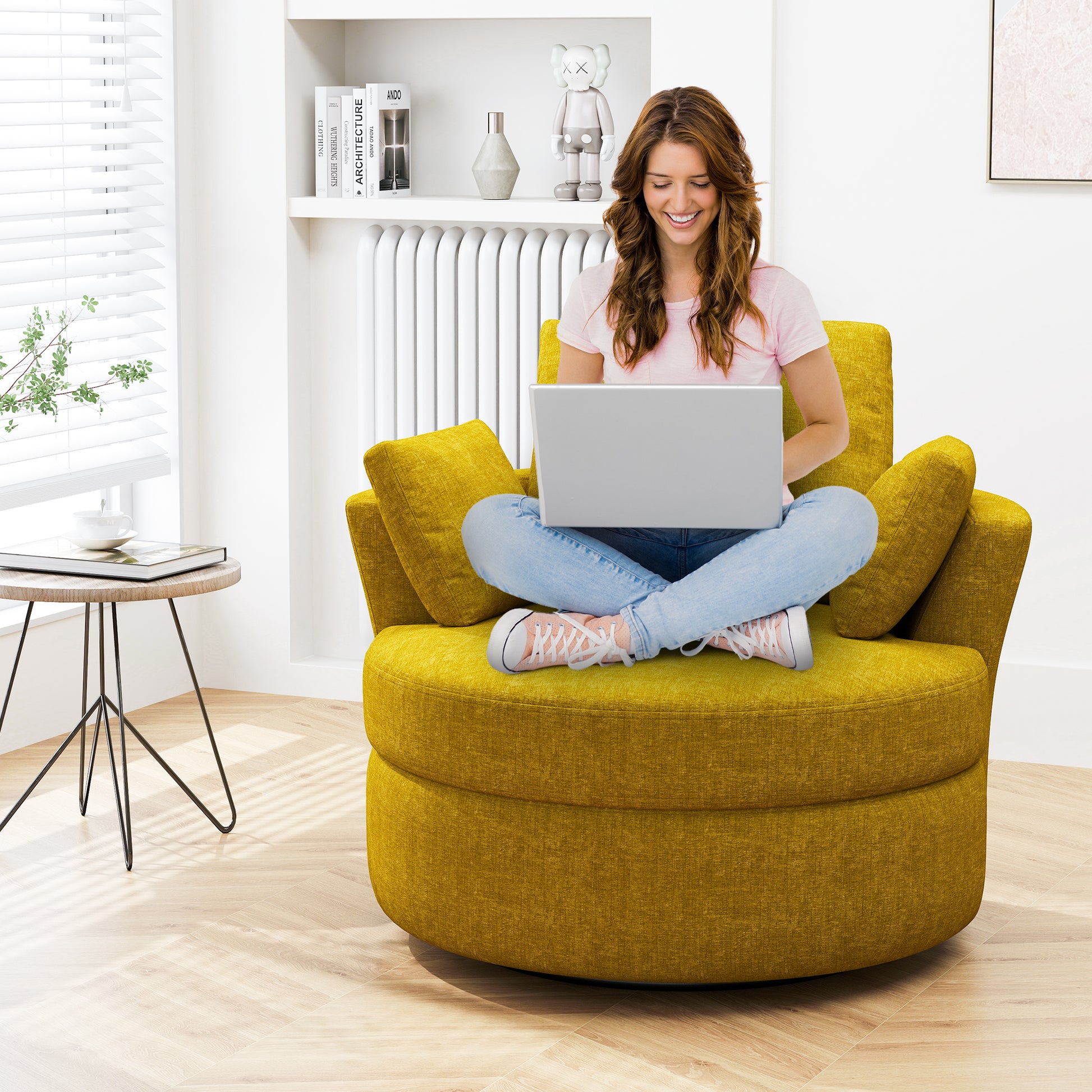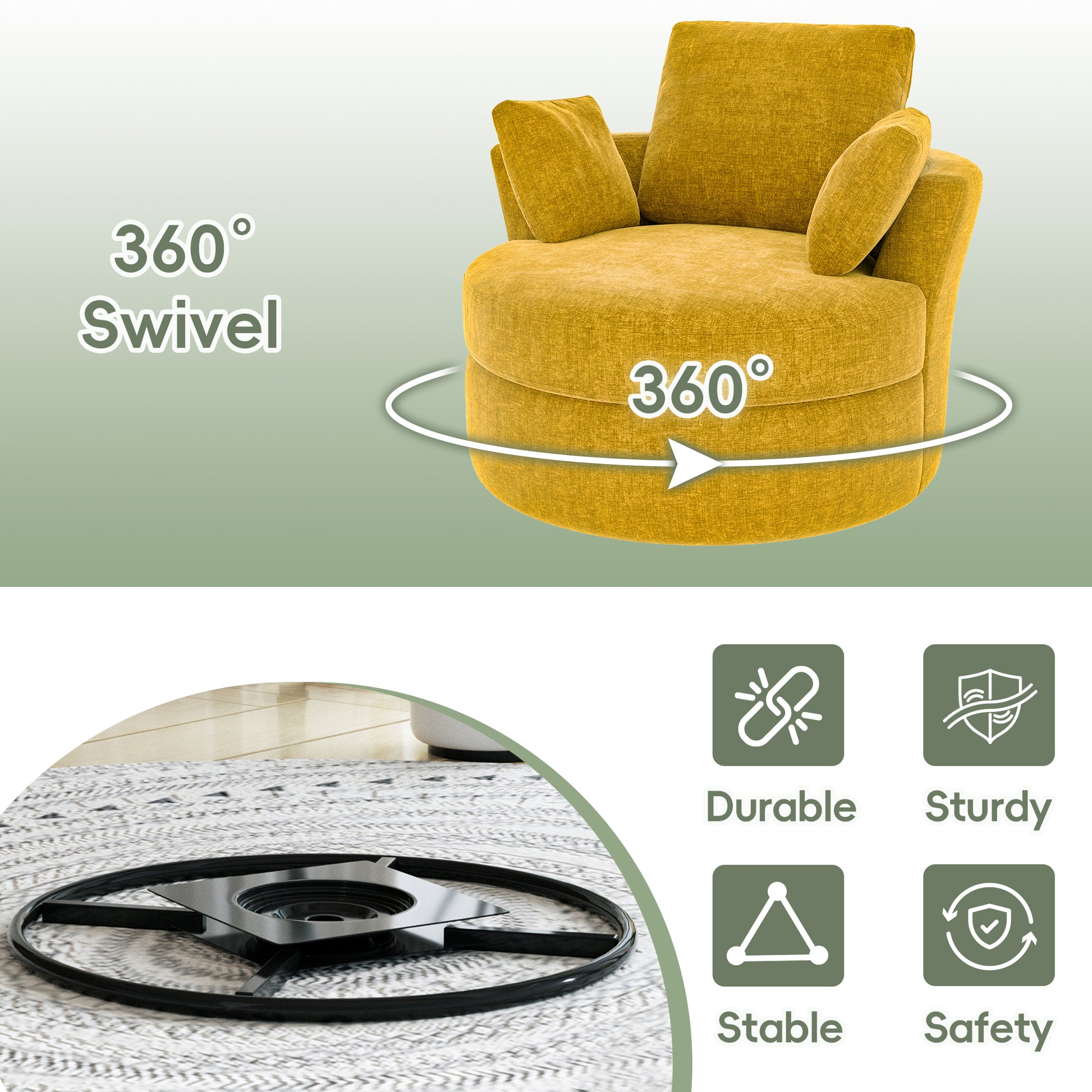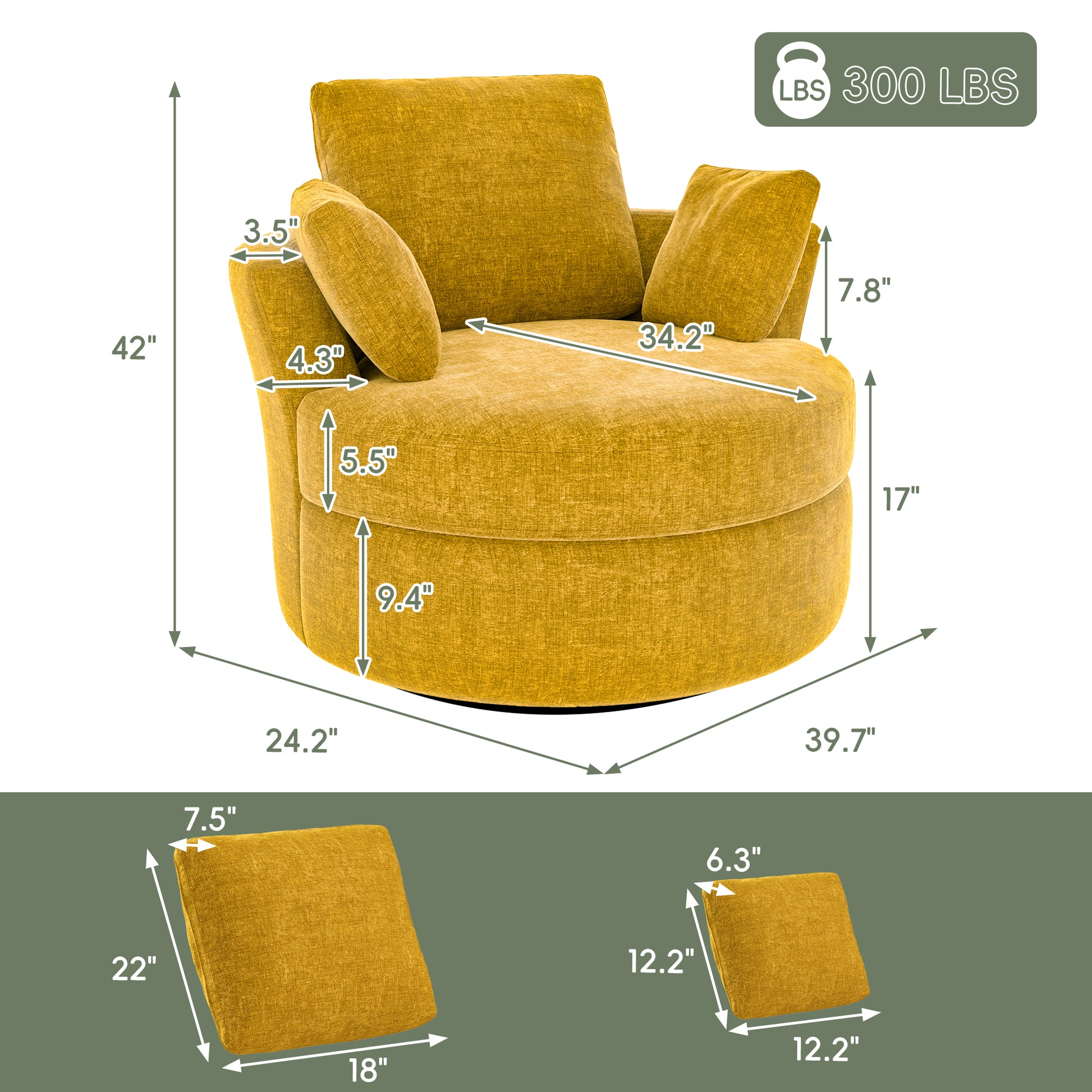 Indulge in ultimate comfort with this 42-inch Tolead Upholstered Swivel Barrel Chair. Crafted with ergonomic principles, the curved backrest and armrests provide superior posture support, while the generous PP cotton filling in the spacious 40-inch wide and 5.5-inch thick cushion offers soft, plush seating. Featuring a smooth 360-degree swivel base and a removable, machine-washable seat cover, this durable nylon fabric chair seamlessly blends style and convenience, ensuring a relaxing and effortless experience in any living space.