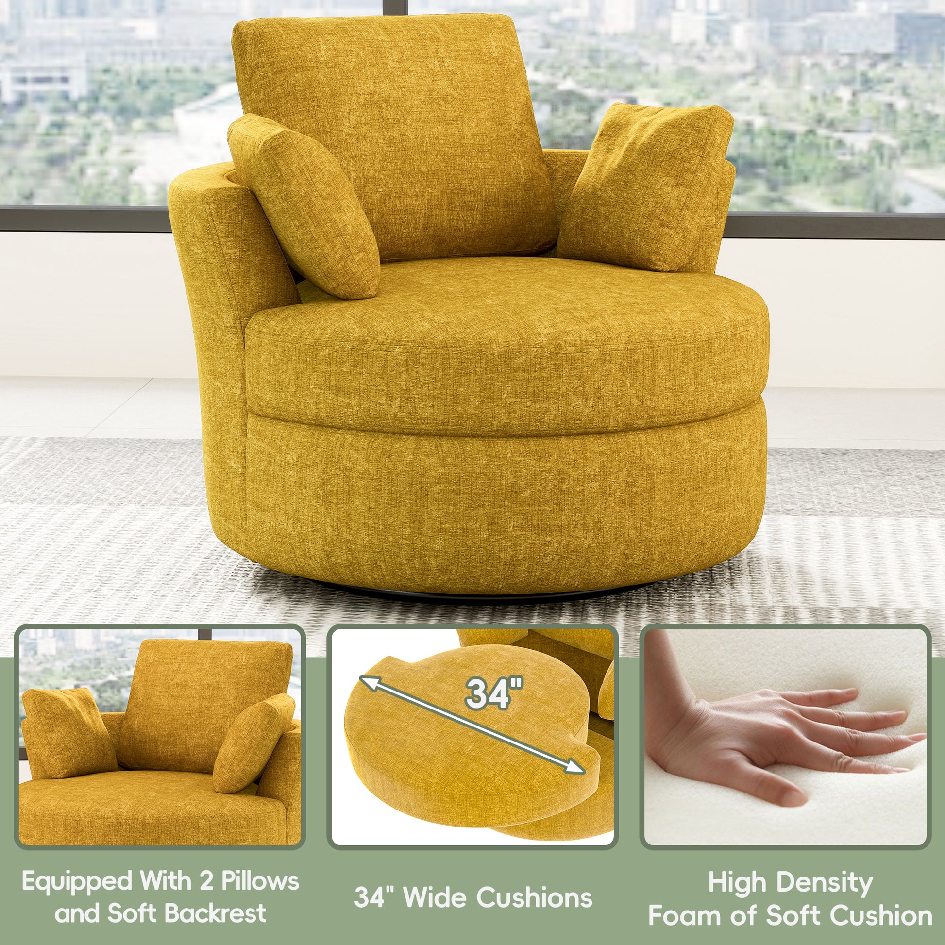 Tolead Upholstered Barrel Chair with 3 Pillows, Orange