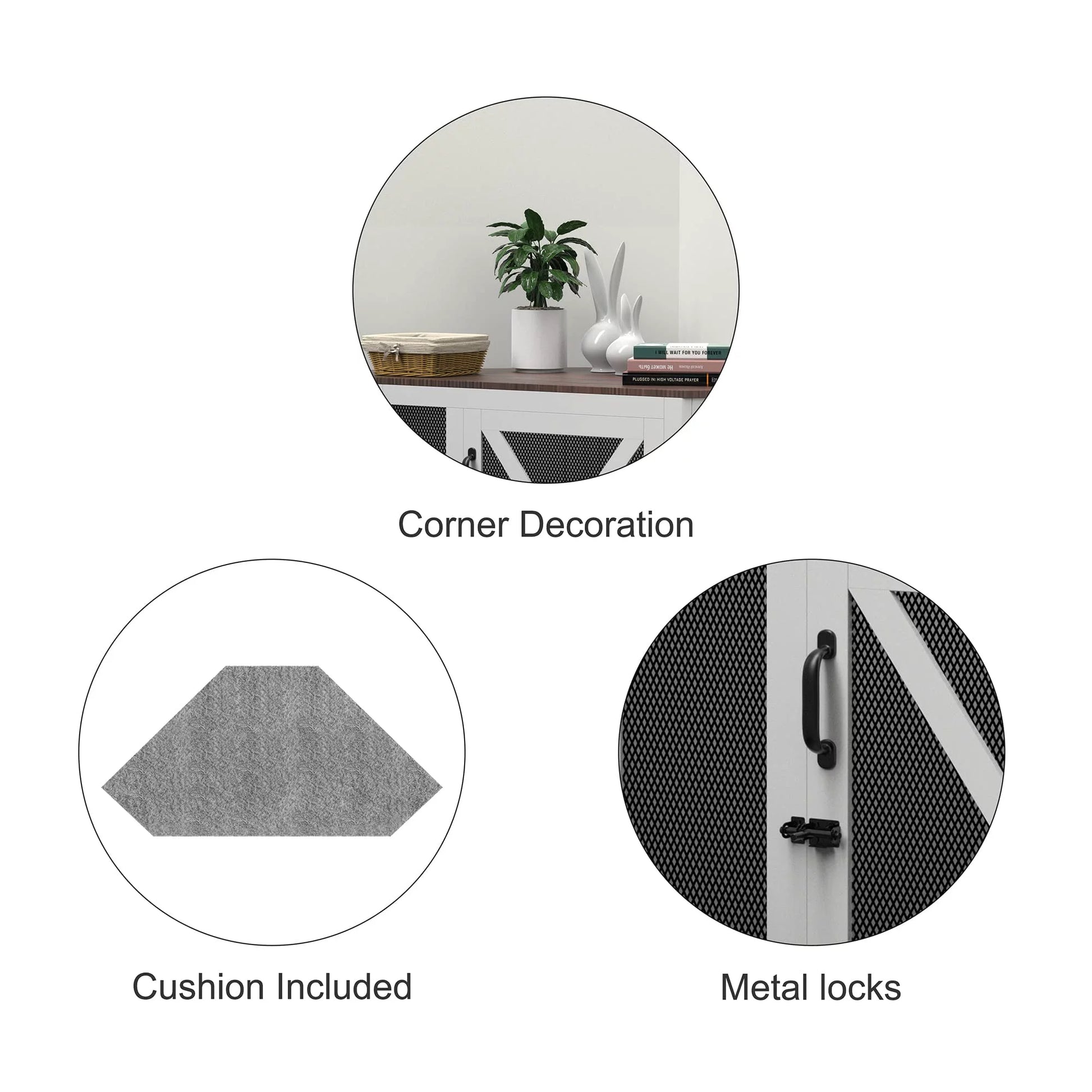 Tolead Wood Corner Dog Crate Furniture, Pet Crate, Indoor, Mesh, All-breed, Black and White
