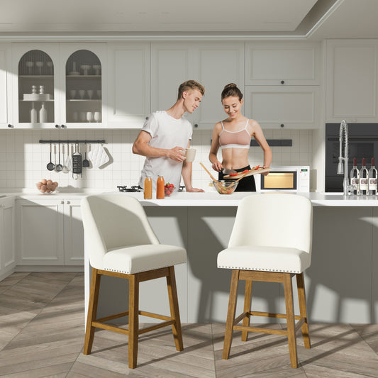 Tolead 2-Piece 29-Inch Swivel Bar Stools with 360-Degree Swivel and Upholstered Seat, White