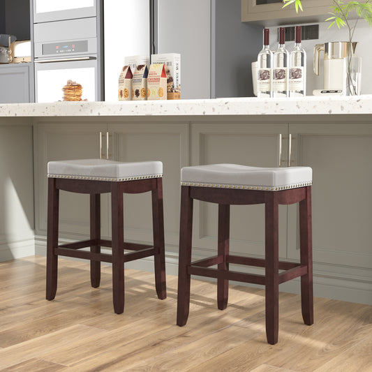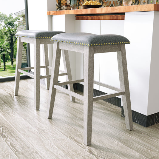 Tolead 24" Backless Bar Stools with Saddle Cushion Seat - Set of 2, Gray