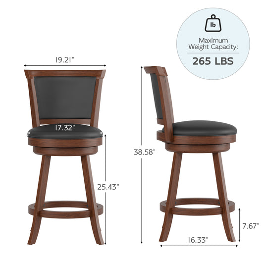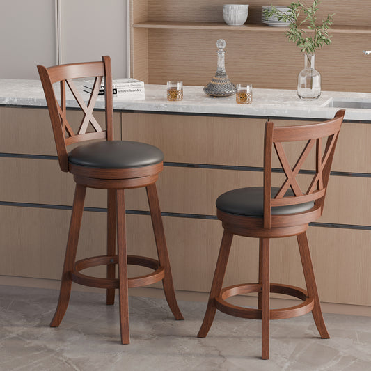 Tolead 2-Piece 24-Inch 360-Degree Swivel Bar Stools with PVC Cushioned Seat