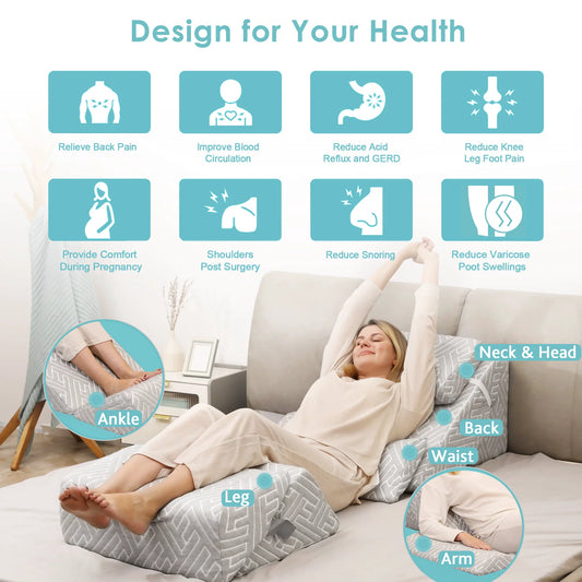Tolead 6pcs Adjustable Orthopedic Bed Wedge Pillow Set, Sleeping, Sitting Pillow, Gray