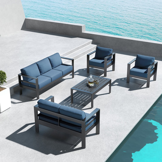 Tolead 5 Piece Outdoor Aluminum Patio Furniture Set with Cushions, Balcony, Garden